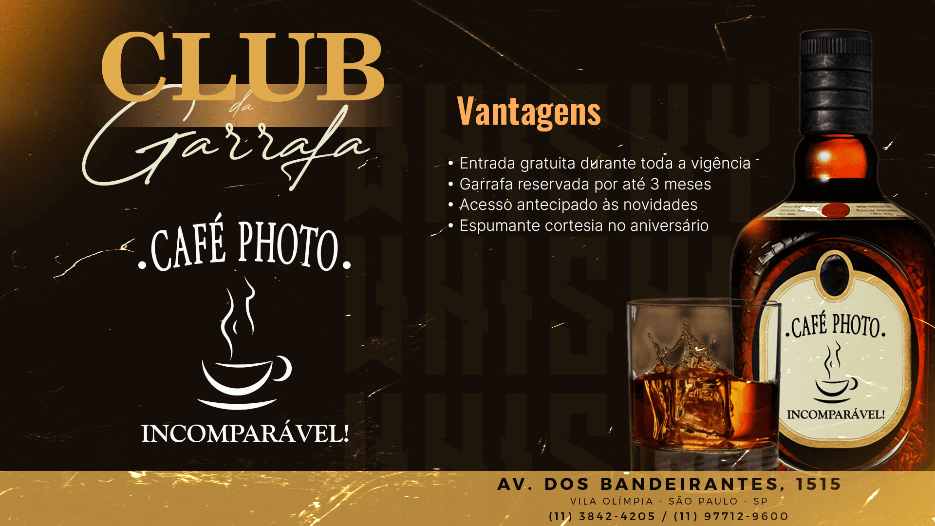 O Café Photo Incomparável é uma das opções mais sofisticadas e elegantes em termos de Casa Noturna de entretenimento na noite paulistana. Reconhecido internacionalmente por sua discrição, requinte e sofisticação, este estabelecimento está localizado no bairro da Vila Olimpia, na Av. dos Bandeirantes, 1515 e oferece entretenimento de alto nível. Seu ambiente discreto e requintado atrai clientes em busca de experiências marcantes.