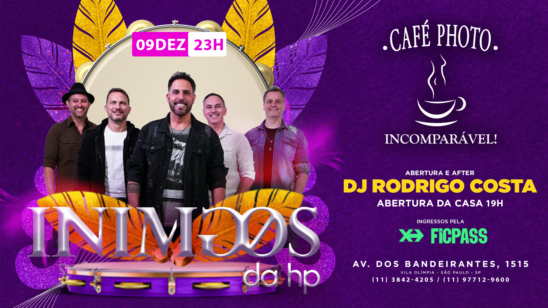 Uma noite especial no Café Photo com show do grupo de samba Inimigos da HP. Garanta seu ingresso com antecedência pelo canal oficial.